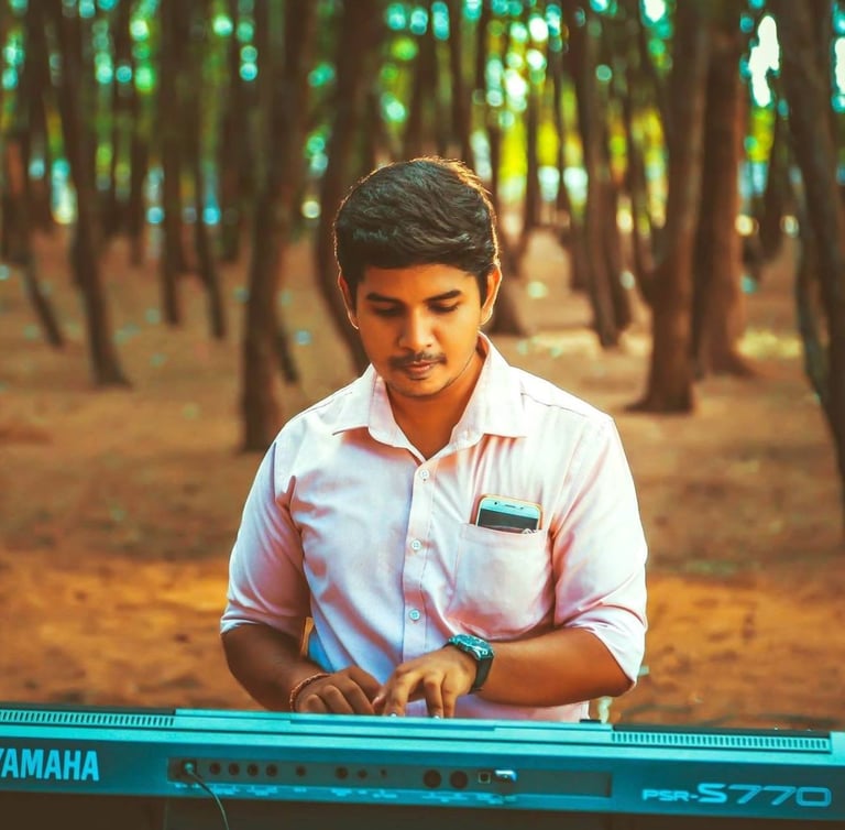 பதில் :- அப்பா. எனது விசைப்பலகை ஆசிரியர். அவரும் விசைப்பலகையை முறையாக கற்றவர் அல்ல. ஆனால் பல கருவிகளை கேள்வி ஞானத்தில் வாசிக்கக்கூடியவர். அவரது காலத்தில் புனித மிக்கேல் கல்லூரி Band இசைக்குழுவின் அங்கத்தவர். ஜீவன் ஜோஸப் ஆசிரியரின் பயிற்றுவிப்பில் வளர்ந்தவர். BMICH இல் நடைபெற்ற அணிசேரா மாநாட்டிற்கு மட்டக்களப்பில் இருந்து ஒரே பாடசாலையாக சென்ற புனித மிக்கேல் கல்லூரியின் band வாத்தியக்குழுவின் அங்கத்தவர். இந்த கதைகளை கேட்கும்போதே ஒரு ஆர்வம் தானாக வந்துவிடும்.