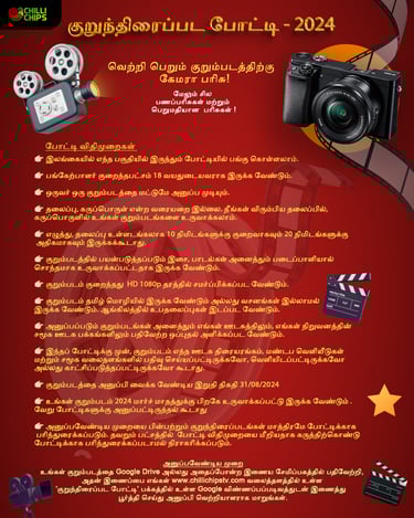 👉🏻 குறும்படம் தமிழ் மொழியில் இருக்க வேண்டும் அல்லது வசனங்கள் இல்லாமல்